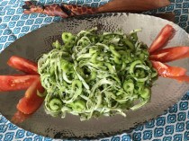 Like many others, I recently caught the spiralizer food craze. It’s been fun coming up with the myriad of spiralized dish possibilities. After testing different versions, I came up with this yummy cucumber salad with Armenian braided string cheese. It