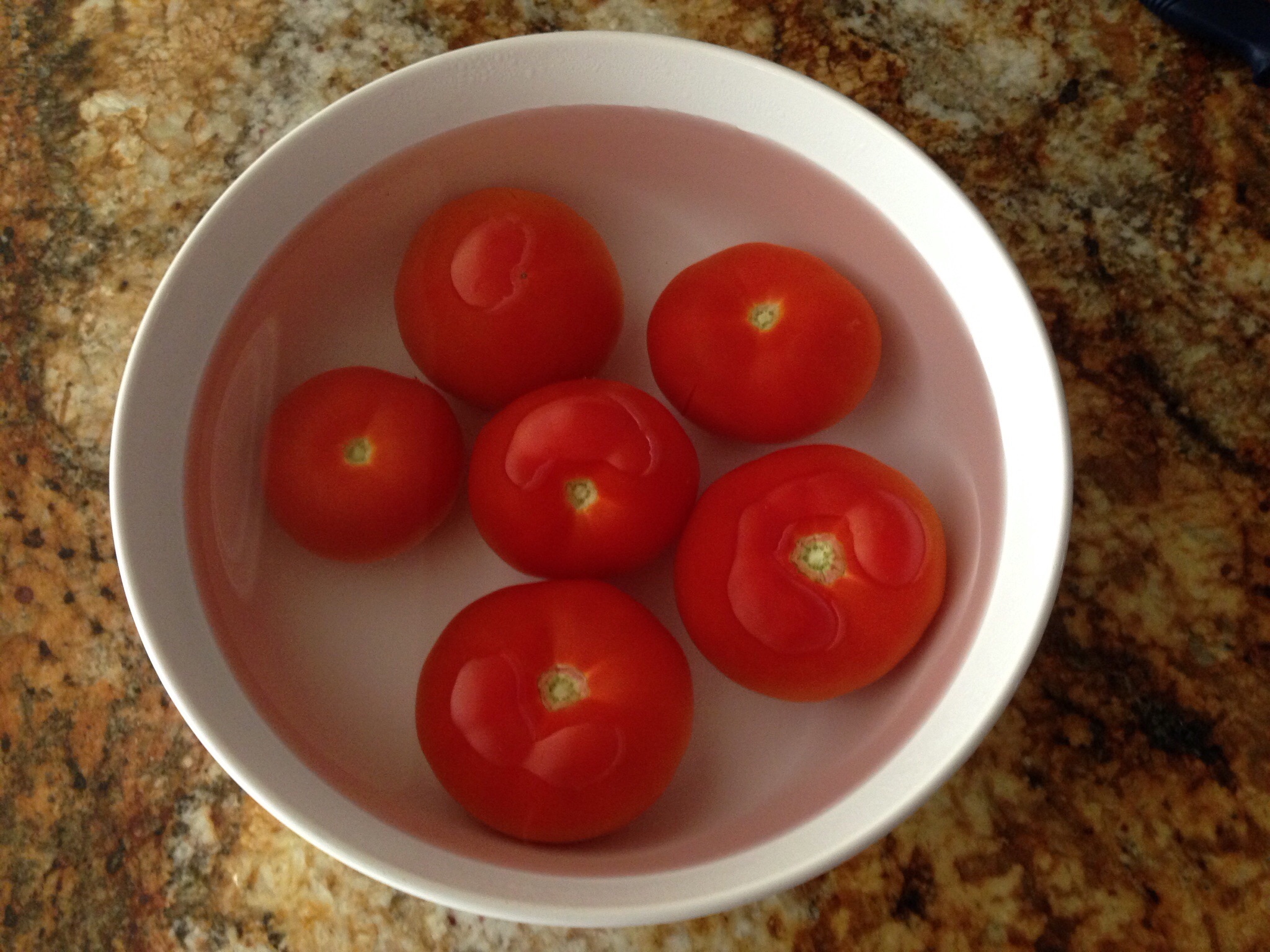 While the tomatoes are submerged in the water, add water to big and deep pot and bring to boil for the pasta.