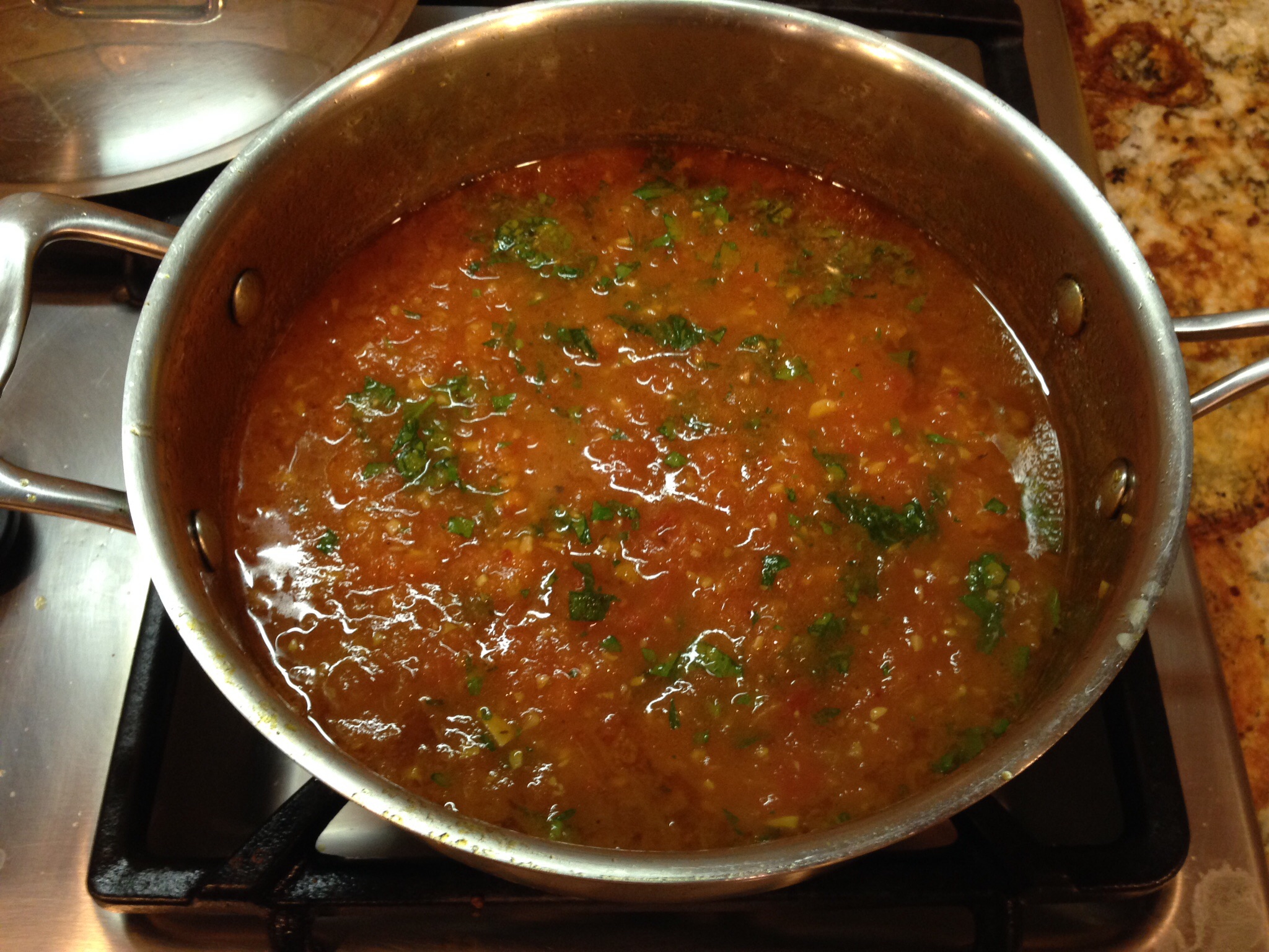 Although this sauce is ultra easy to make, the flavors are complex. I will never buy sauce in a jar because the home made version is very easy and quick to make, not to mention so much tastier! This sauce takes about 30 minutes, including the preptime. The one thing you need to really pay attention to is the quality of the tomatoes. Make sure to go for organic here (they tend to be tastier), and make sure they are juicy and deep red. The number one test for good tomatoes is to smell a bunch on a vine. It’s one of my favorite smells (up there with Lavender and roses). The more fragrant, the better.