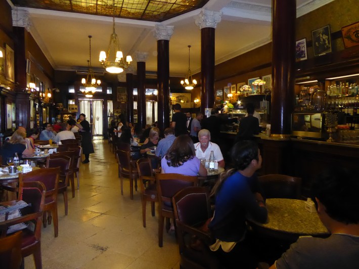 Like a typical European city, Buenos Aires has a cafe on every street corner. Many are quaint and nostalgic, and you will want to soak in the atmosphere while sipping a cafe con leche. These places are great to get popular baguette style sandwiches (usually with a slice of steak, sausage, or schnitzel) or empanadas. For something sweet, try the very popular medialunas, which are basically croissants. For dessert, they offer all kinds of cakes, but be warned, practically every kind of dessert will have a dollop of dulce de leche with it. This seemed like heaven at first, but my friends and I soon had dulce de leche overload. Here are a few noteworthy cafes: