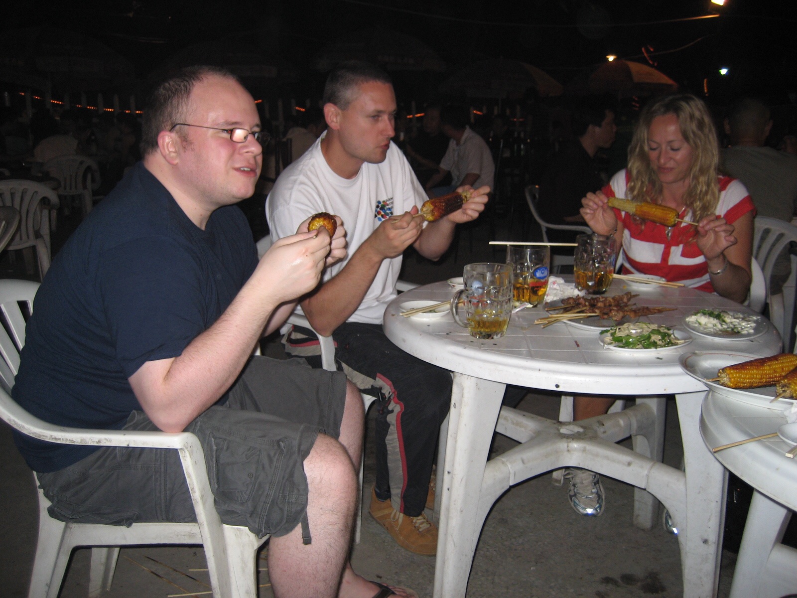 Beijing summer nights for me meant that it was street food season. The nights were warm, and it felt good to be outside after a long Beijing winter. Some restaurants would do brisk business by putting plastic tables and chairs outside on sidewalks and serving Uyghur style mutton kebabs, known as yangrou chuanr, with other snacks such as boiled peanuts, edamame, and an assortment of cold salads and dishes. These foods would go so well with numerous bottles of Qingdao beer. Some of these kebab places were very makeshift and would be there one day and gone the next. If you want to read more about Uyghurs and where they come from, you can read my other post, cumin and paprika lamb.