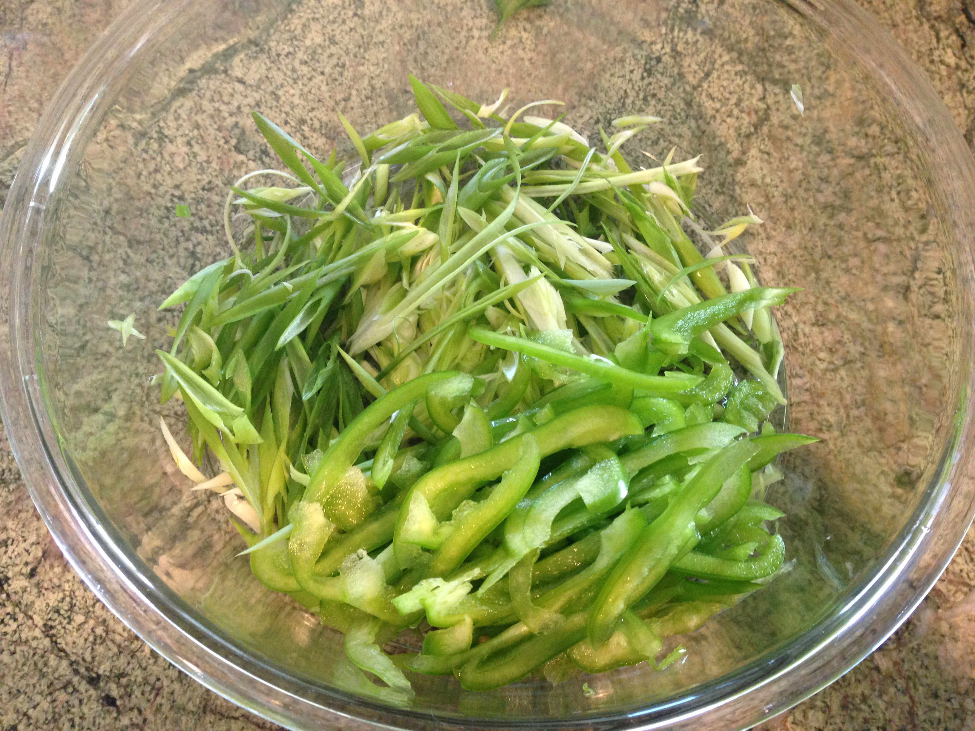 - 5-6 green onions, white and light green parts only, cut in diagonal strips